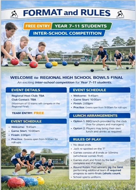 The ‘Let’s Play Bowls’ committee invites: Government, Independent and Catholic secondary schools to our local ‘inter-school’ bowls competition.