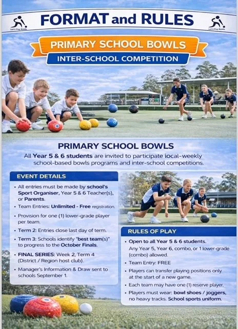The Let’s Play Bowls committee invites: Government, Independent and Catholic primary schools to our local ‘inter-school’ bowls competition.