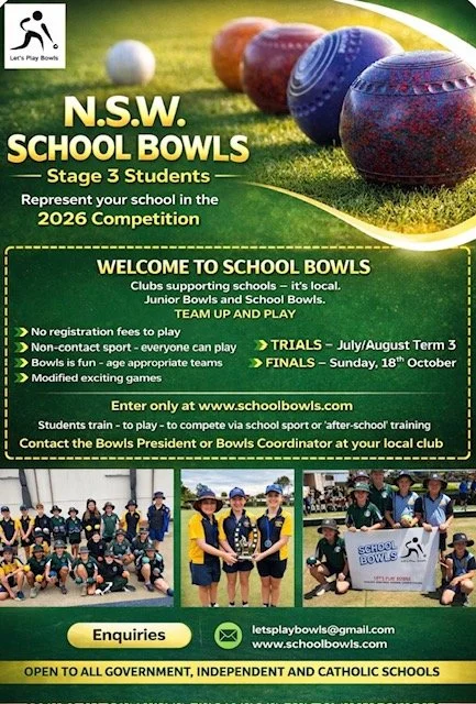 School sport organisers, teachers and parents are encouraged to contact their local bowling club to arrange either a school sports program and / or ‘after school’ training and coaching.